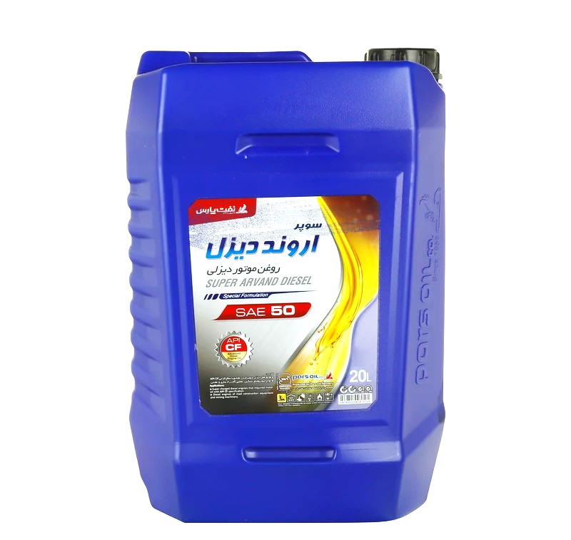 روغن موتور دیزلی شرکت نفتی ، ۲۰ لیتری پارس سوپر اروند دیزل ، با گرانروی ( ویسکوزیته ) ۵۰ و سطح کیفی CF